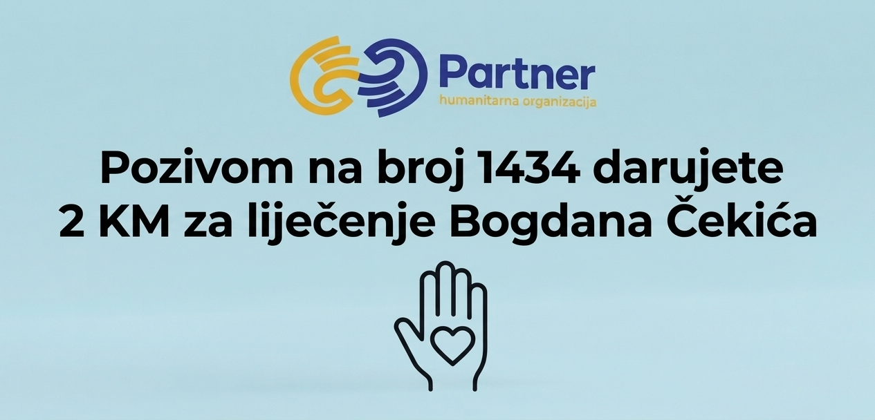Pozovimo 1434 i pomozimo Bogdanu ČekićuHumanitarna organizacija „Partner“ u saradnji sa kompanijom Mtel pokrenula je humanitarni broj sa ciljem prikupljanja sredstava za liječenje Bogdana Čekića iz Čelinca. Pozivamo sve humane ...