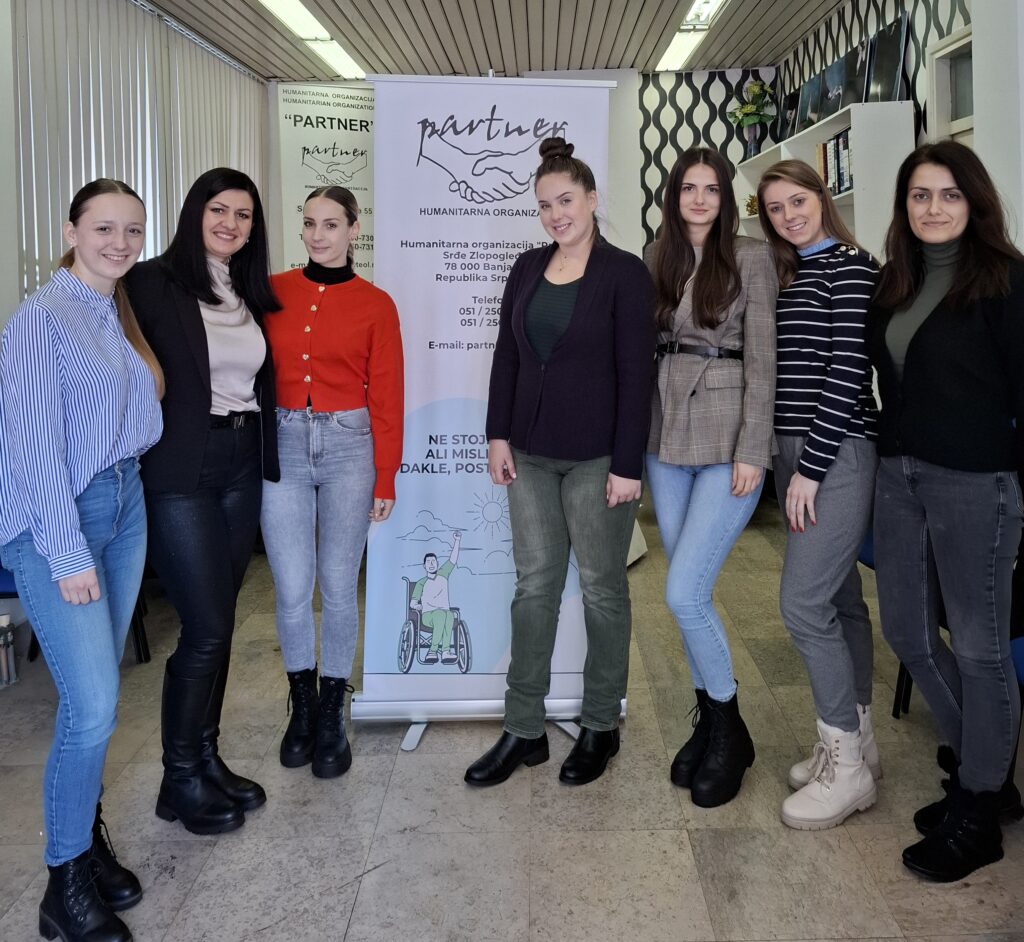 Nakon studenata psihologije u posjetu su nam došli i studenti socijalnog rada, tačnije studenti četvrte godine Odsjeka za socijalni rad na Fakultetu političkih nauka u Banja Luci koji su obavljali praksu u Centru za socijalni rad Banja Luka. Cilj njhove posjete bio je da se detaljnije upoznaju sa radom Humanitarne organizacije „Partner“, odnosno kako u praksi funkcionišu usluge koje u saradnji sa Centrom za socijalni rad Banja Luka pružamo a to su personalna asistencija za osobe sa invaliditetom i pomoć i njega u kući za stara i iznemogla lica. Rad naše Organizacije studentima su predstavili naši stručni radnici Aleksandra Dejanović, socijalni radnik i Irena Pašić, psiholog.